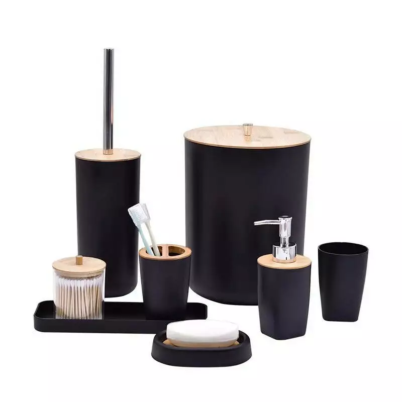 Набір аксесуарів для ванної кімнати і душа 8в1, урна,дозатор для мила, мильниця, склянки та аксесуари,чорний