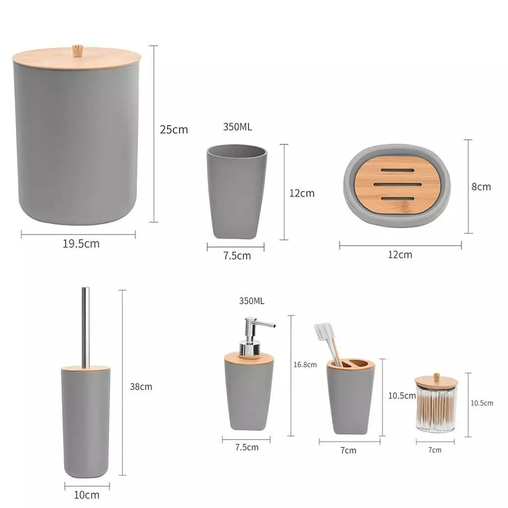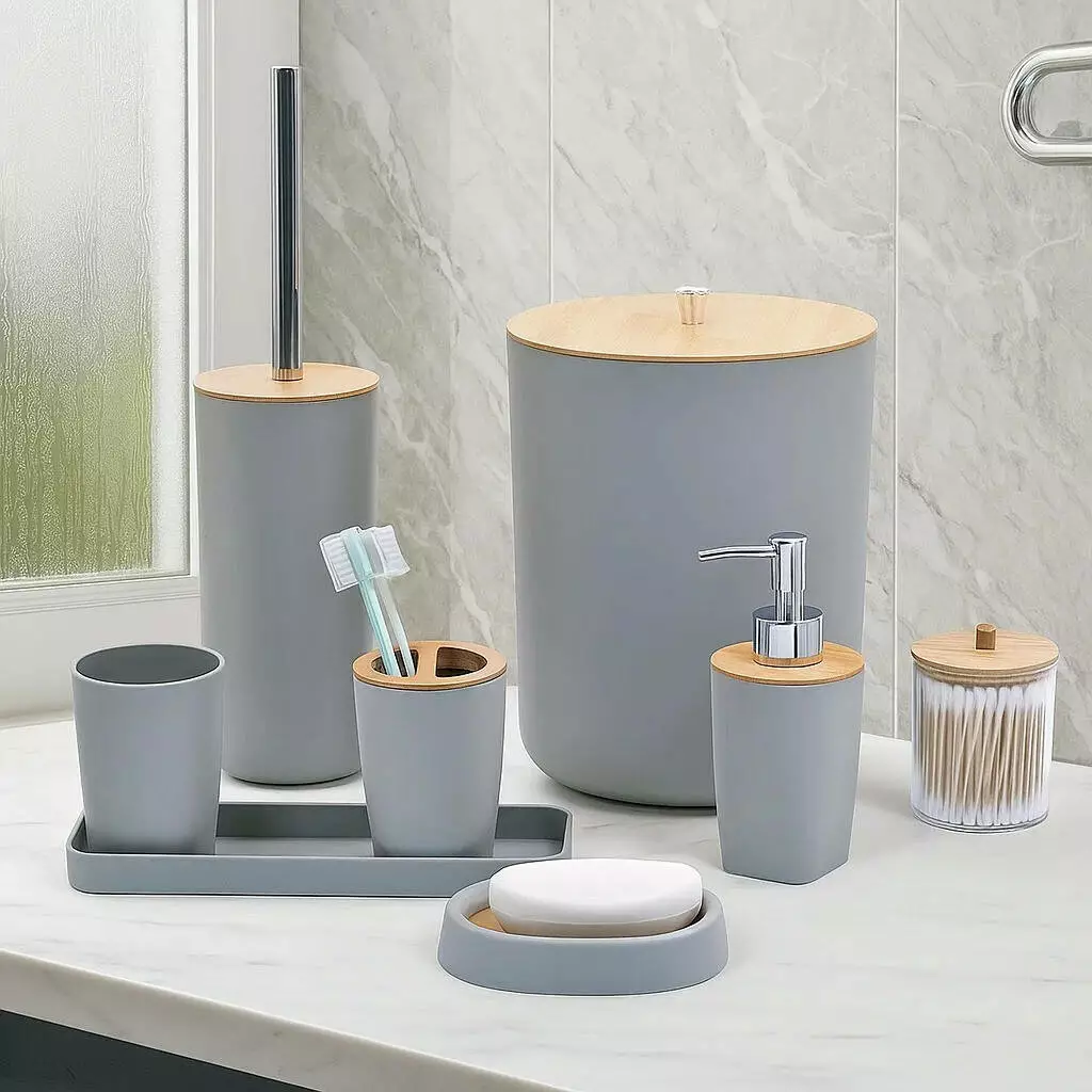 Набір аксесуарів для ванної кімнати і душа 8в1, урна,дозатор для мила, мильниця, склянки та аксесуари,сірий