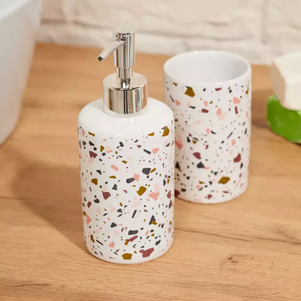 Стакан і дозатор для мила з кераміки, міцні та стильні.