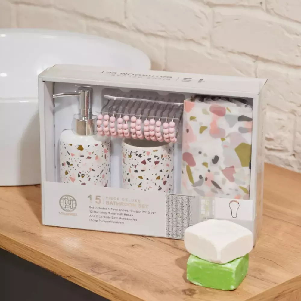 Набір 4 в 1 для ванної кімнати включає в себе шторку для душу,