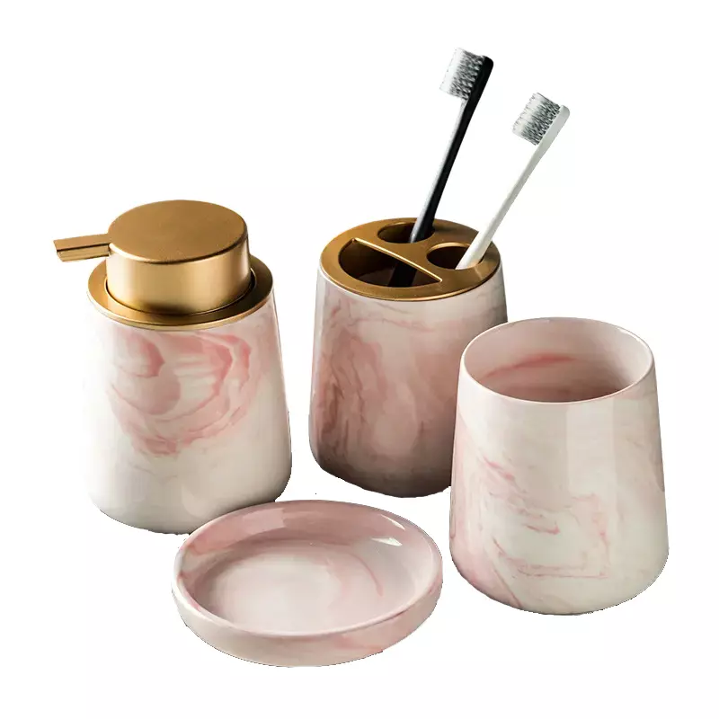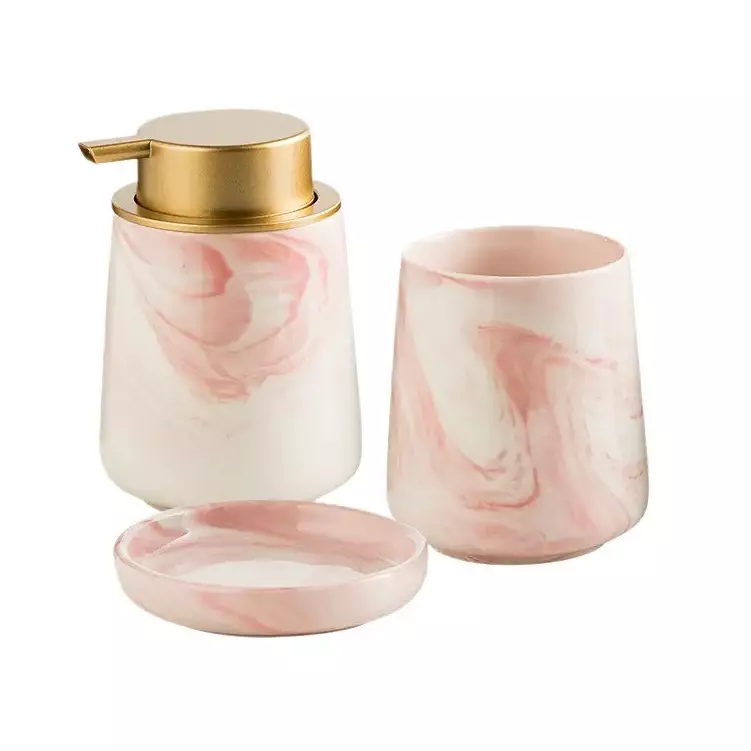 Набір аксесуарів з кераміки для ванної кімнати в кольорі рожевий мармур