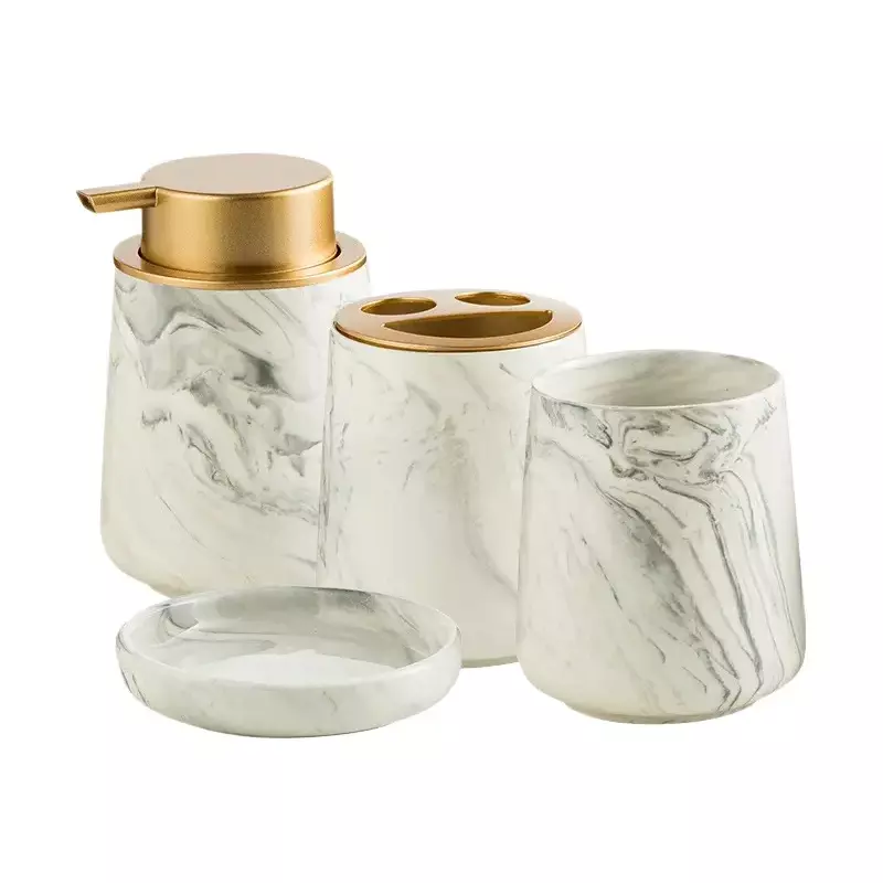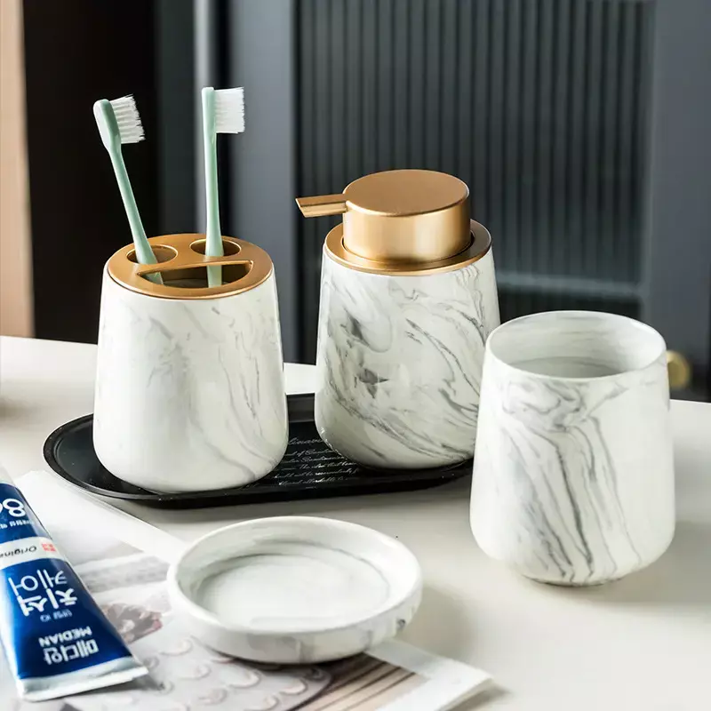 Набір аксесуарів з кераміки для ванної кімнати в кольорі сірий мармур