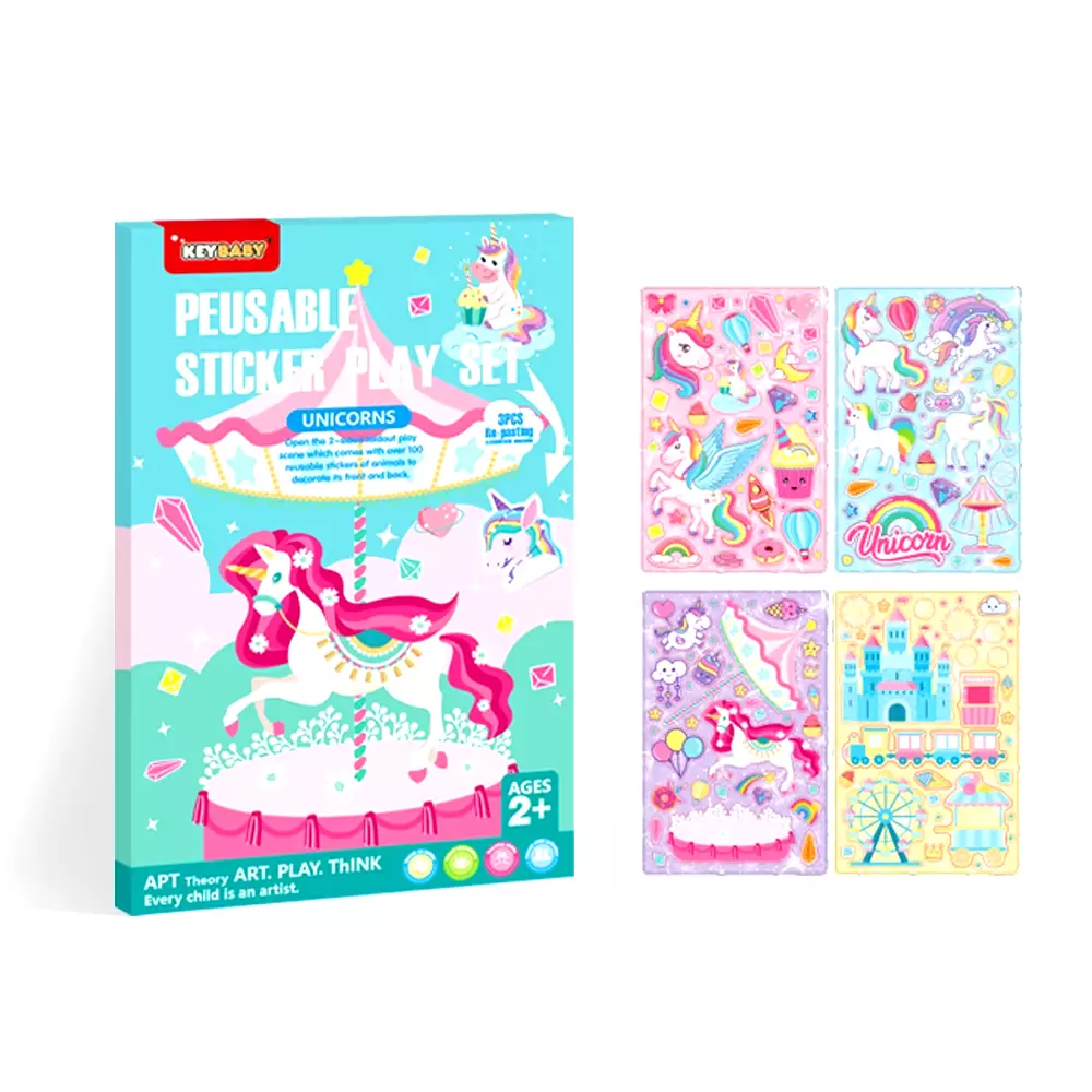 Набір багаторазових наклейок Keybaby з великою сценою для творчості, у кольорі Unicorn