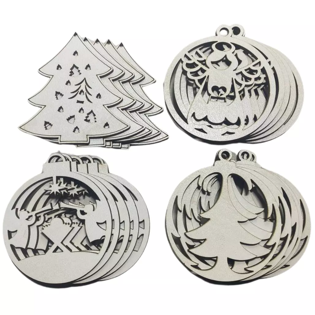 Іграшки мають лаконічний дизайн, що ідеально підходить для класичного або сучасного декору. Розміри іграшок становлять 7 х 7 см для форм у вигляді ялинок і 6,8 см в діаметрі для новорічних куль. Ви можете використовувати їх у натуральному вигляді або прикрасити за своїм бажанням, створюючи унікальні елементи декору. Цей набір підійде для спільної творчості всією сім'єю, особливо напередодні свят.