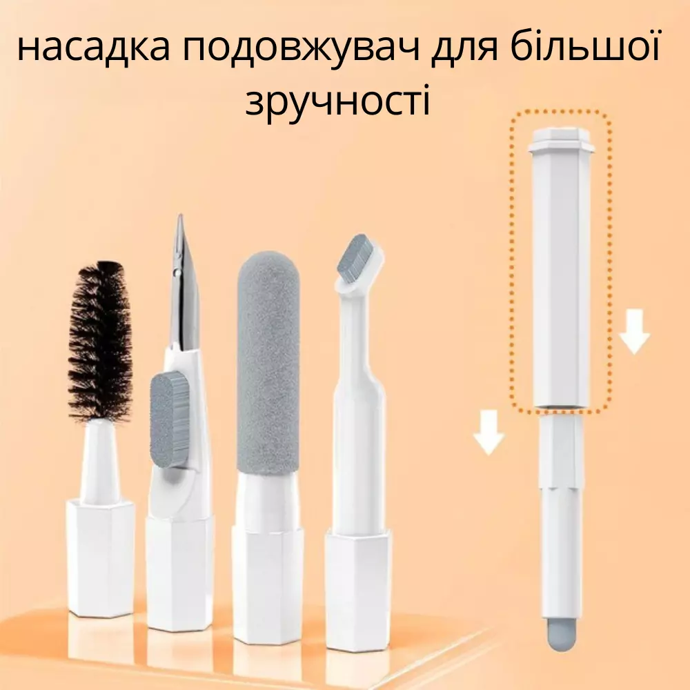 навушниками, камерами та іншою технікою. У набір входять щітки