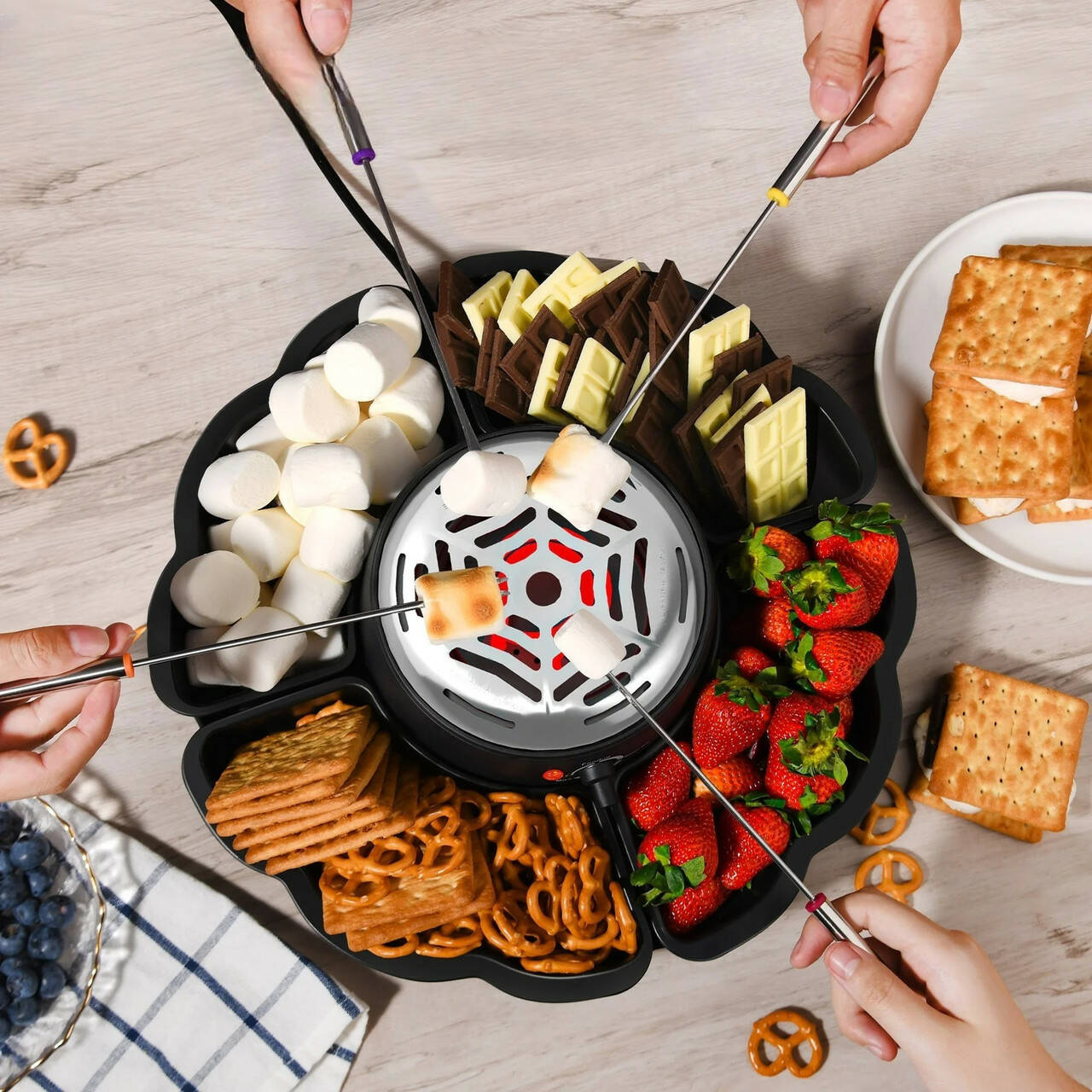 Висока потужність 280 Вт забезпечує швидке та рівномірне нагрівання, тому ви зможете насолоджуватися улюбленими десертами практично відразу. Пристрій ідеально підходить для приготування сморів, розтоплювання шоколаду, а також для макання фруктів, кренделів, зефіру, печива, цукерок та інших ласощів.Максимальна температура нагрівання 90°C.