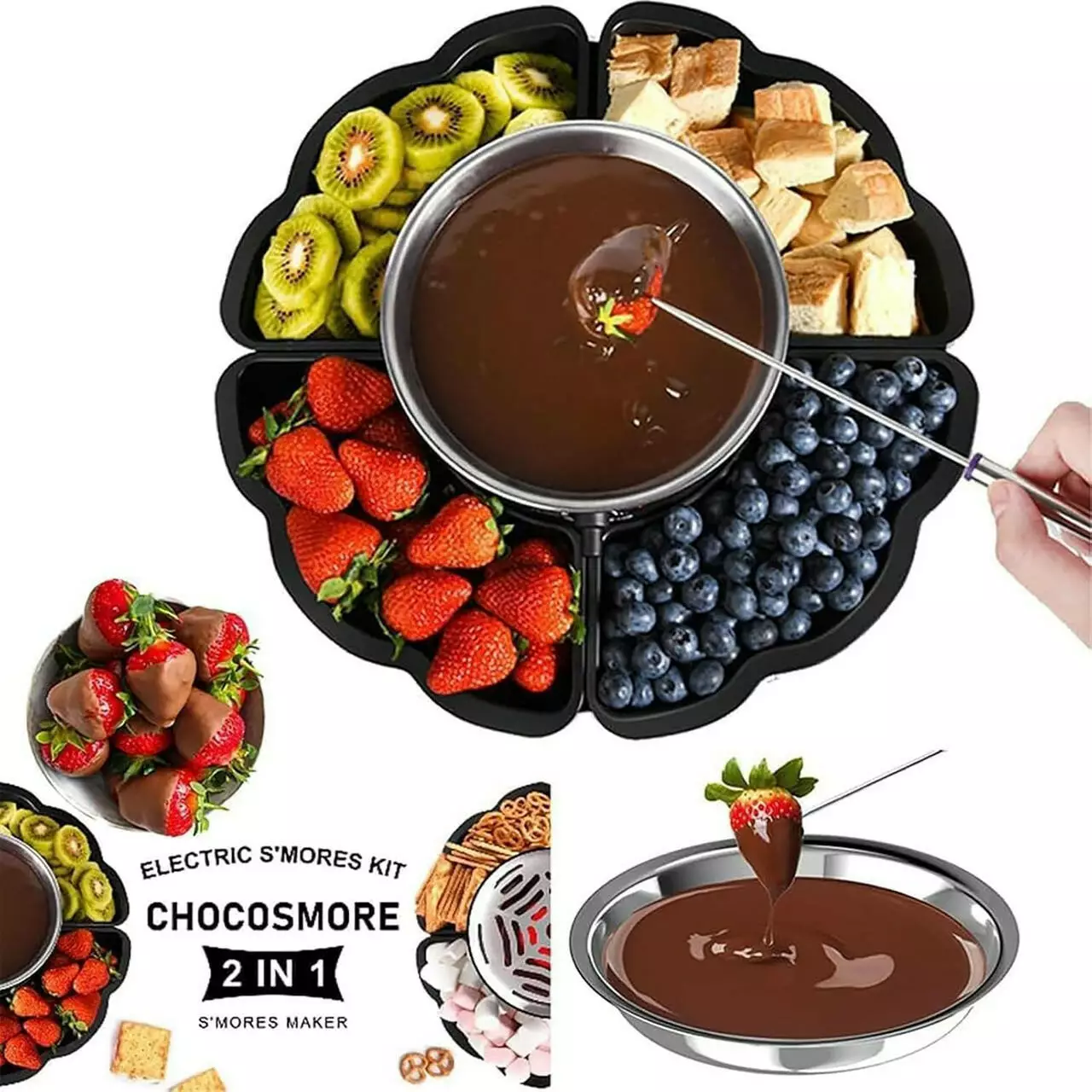 Набір для фондю 2в1 фондюшниця електрична для підігріву шоколаду і смаження зефіру, для десертів шоколадниця з аксесуарами