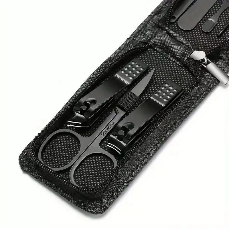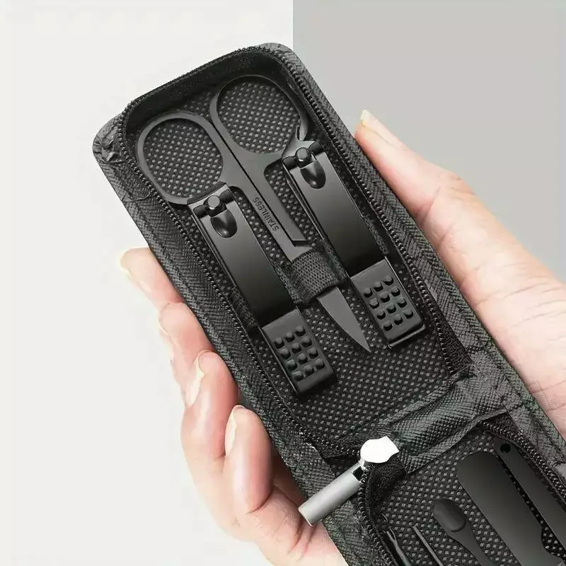 Набір включає два види кусачок для акуратного оброблення нігтів, ножиці, пилку для надання нігтям ідеальної форми, а також дві лопатки для догляду за вухами та нігтями. Всі інструменти виготовлені з якісної нержавіючої сталі, що гарантує довговічність і комфорт у використанні.