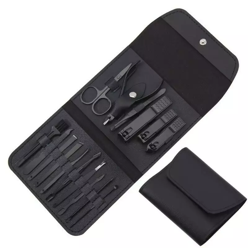 Набір для манікюру педикюру в кейсі ножиці, пилка, пінцет, в наборі 16 шт чорний