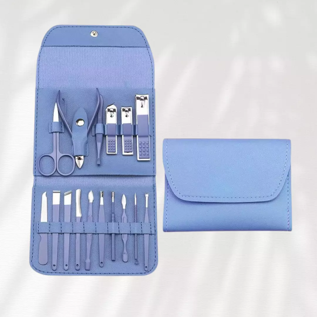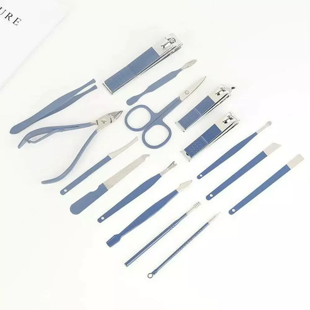 Набір для манікюру і педикюру в кейсі, пінцет, пилочка, ножиці універсальні предмети 16 шт, колір синій