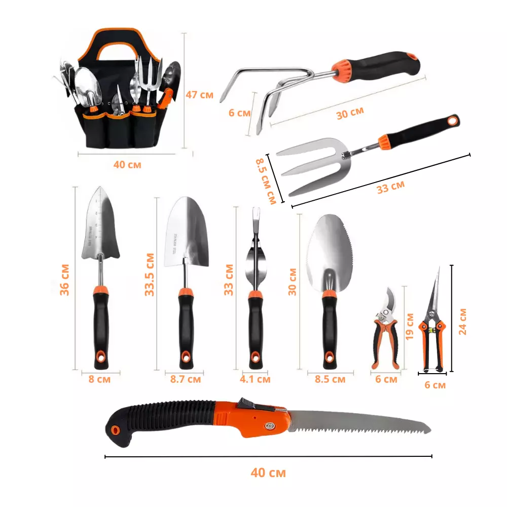 Набір для саду та городу, сумка з комплектом з 9 предметів ручних, садових інструментів і пилкою по дереву