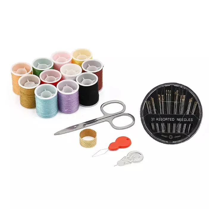 набору входять набір голок, наперсток, ножиці, ниткозшивач, що