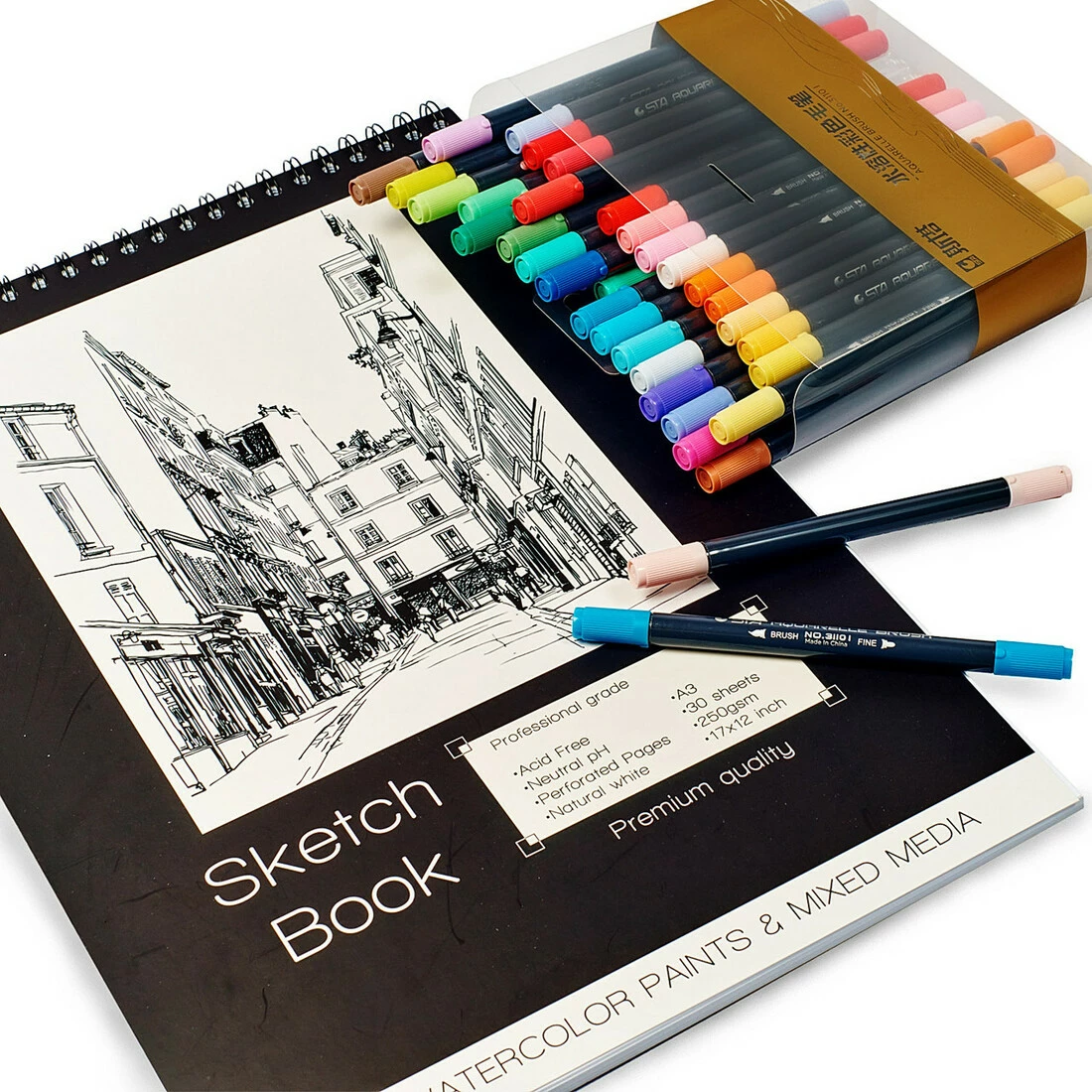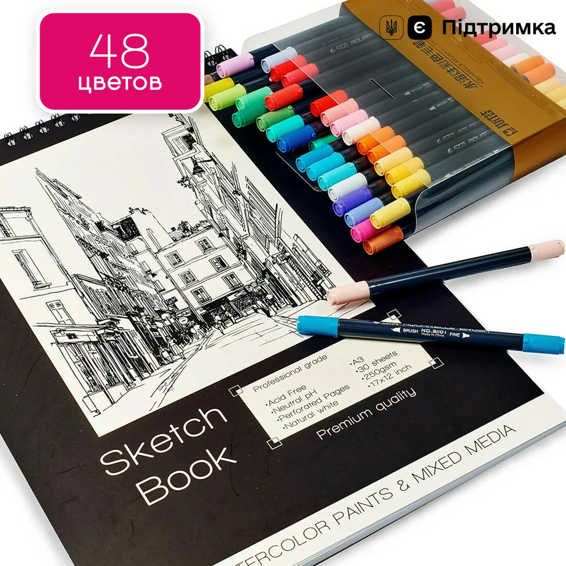 Набір для скетчів, Скетчбук для малювання А3 на 30 аркушів + великий набір двосторонніх маркерів для скетчинга
