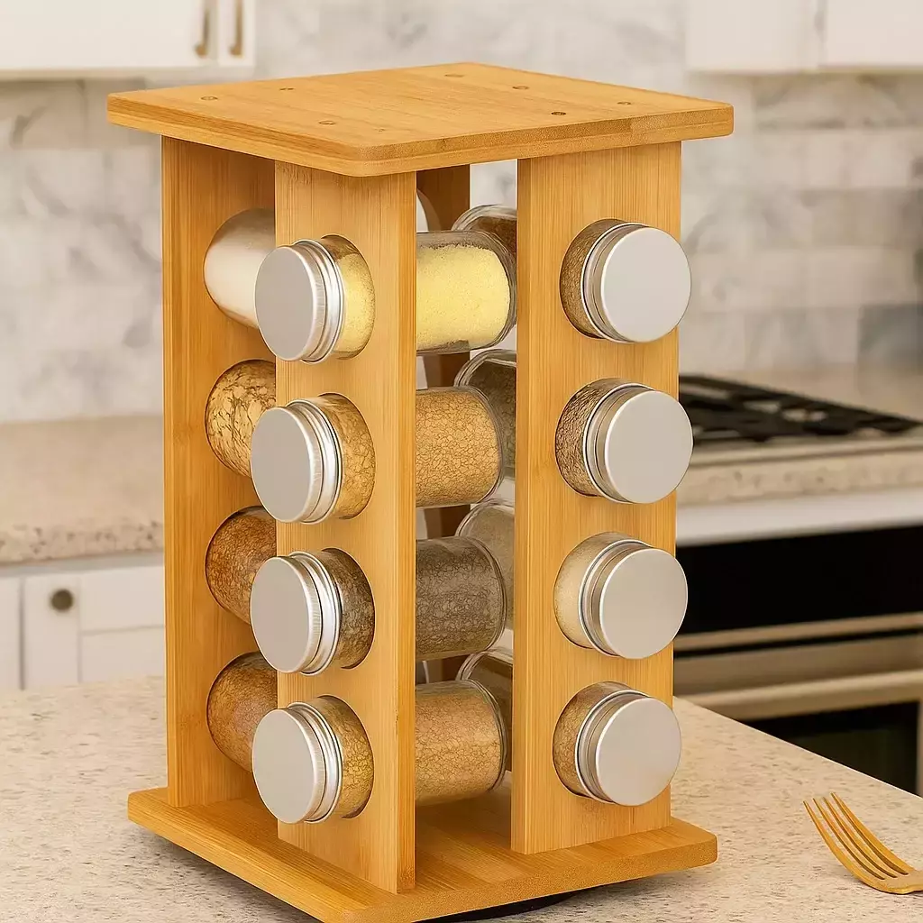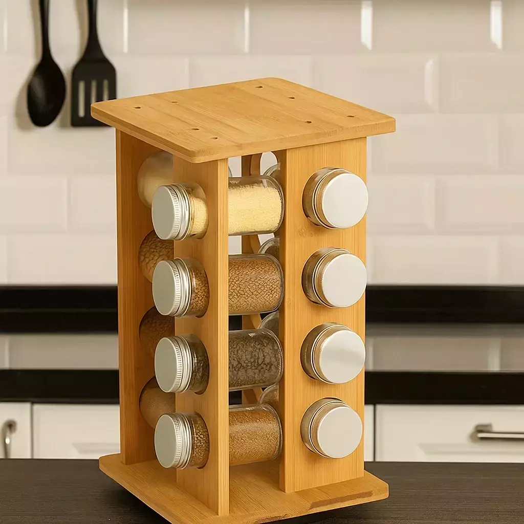 Набір для спецій підставка на кухню з банками для спецій 16 шт настільна з поворотом на 360 градусів, дерев'яна