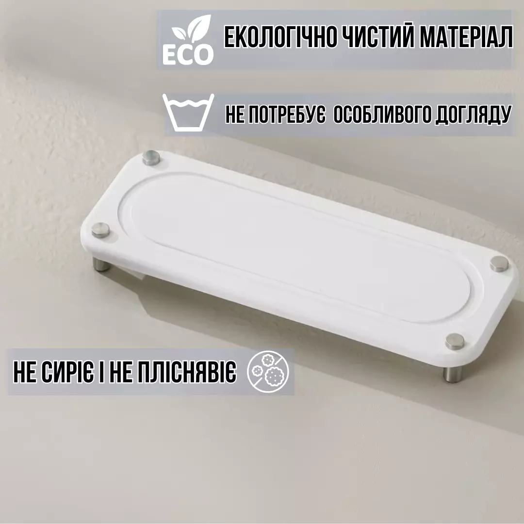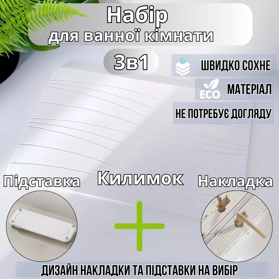 • Килимок-накладка для раковини (60×10 см) – ідеальний для зберігання мила, аксесуарів та інших дрібниць.