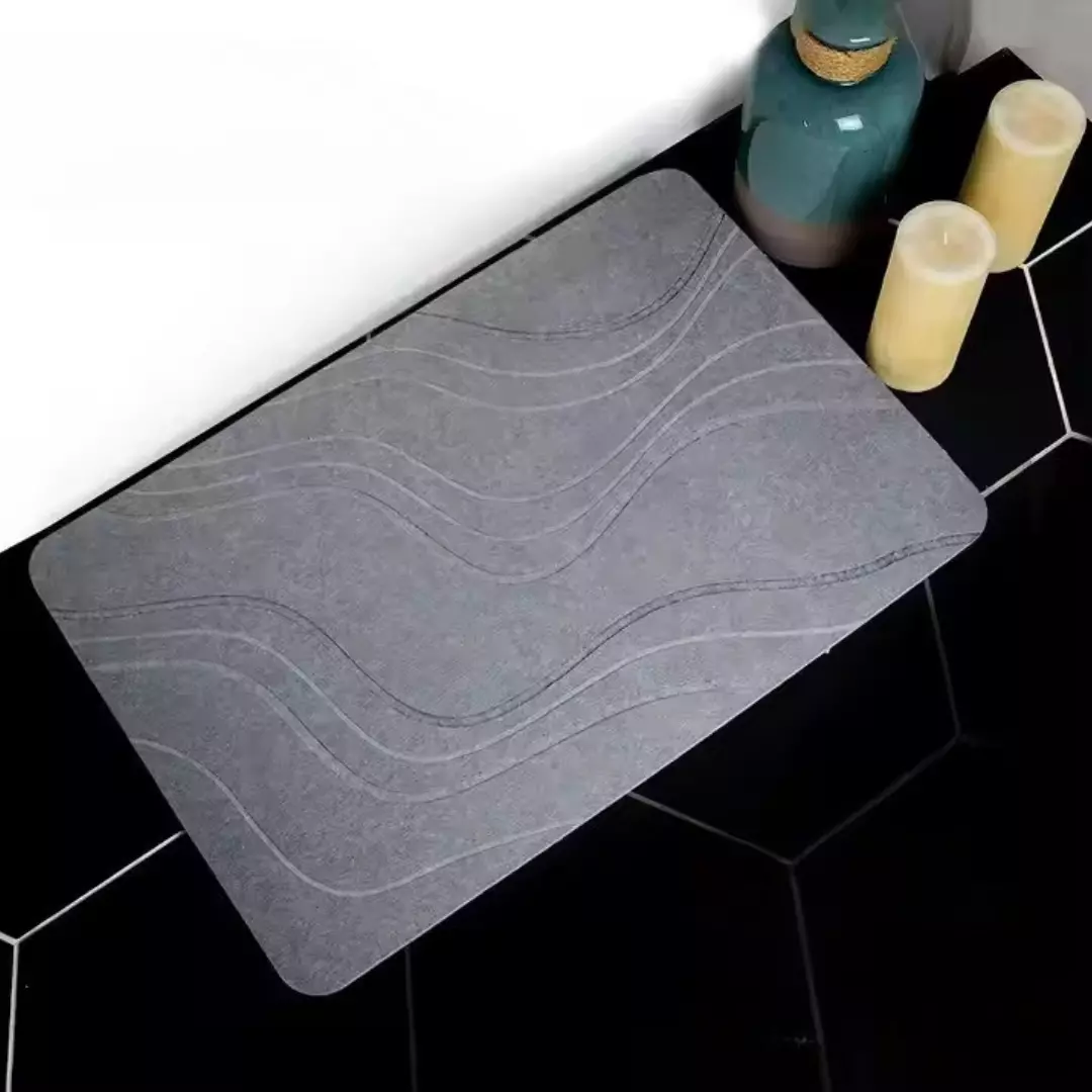 Основним матеріалом комплекту є діатоміт – природний мінерал вулканічного походження, що складається з дрібних скам'янілих водоростей. Його мікропориста структура дозволяє швидко поглинати вологу та висихати за лічені хвилини. Діатоміт має природні антибактеріальні властивості, запобігає утворенню плісняви та неприємних запахів. Це екологічно чистий, довговічний і безпечний матеріал, який ідеально підходить для ванної кімнати.