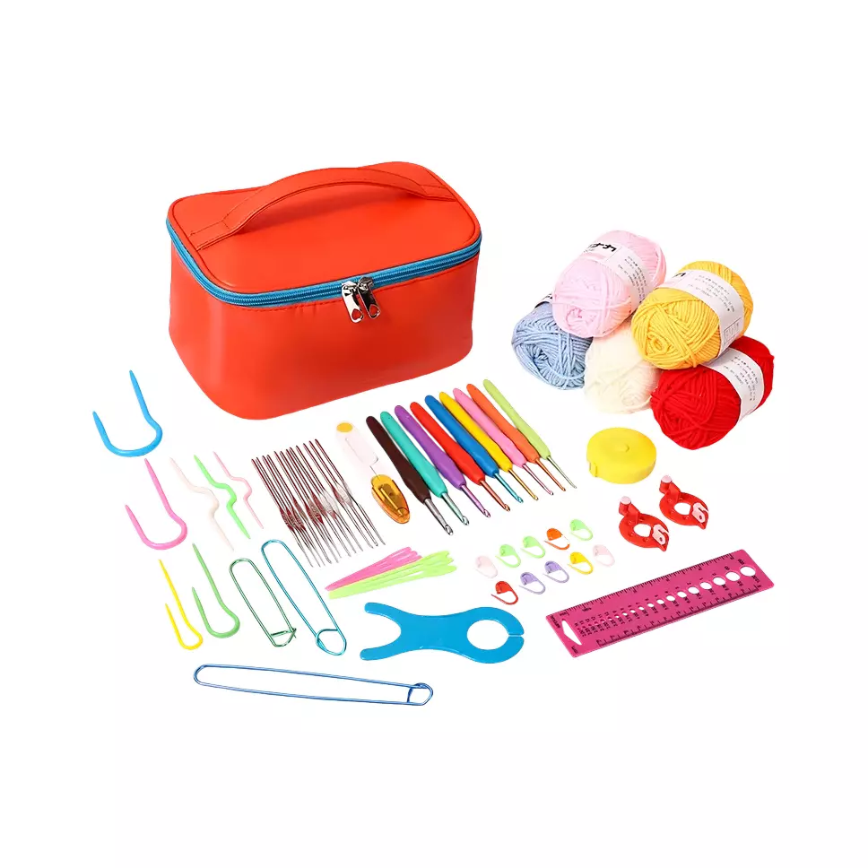 Набір для в'язання гачком із пряжею та аксесуарами в косметичці, червоний колір