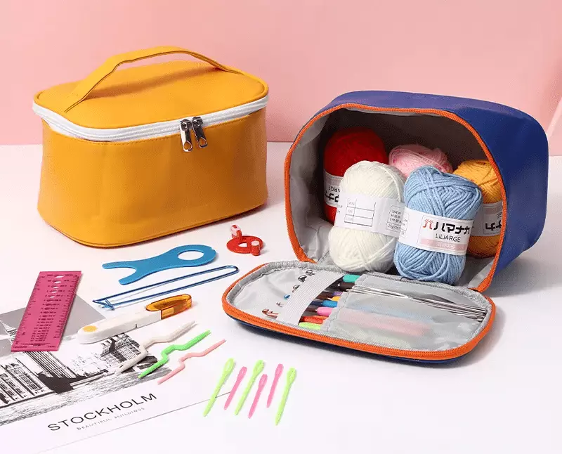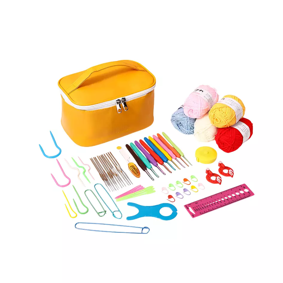 Набір для в'язання гачком із пряжею та аксесуарами в косметичці, жовтий колір