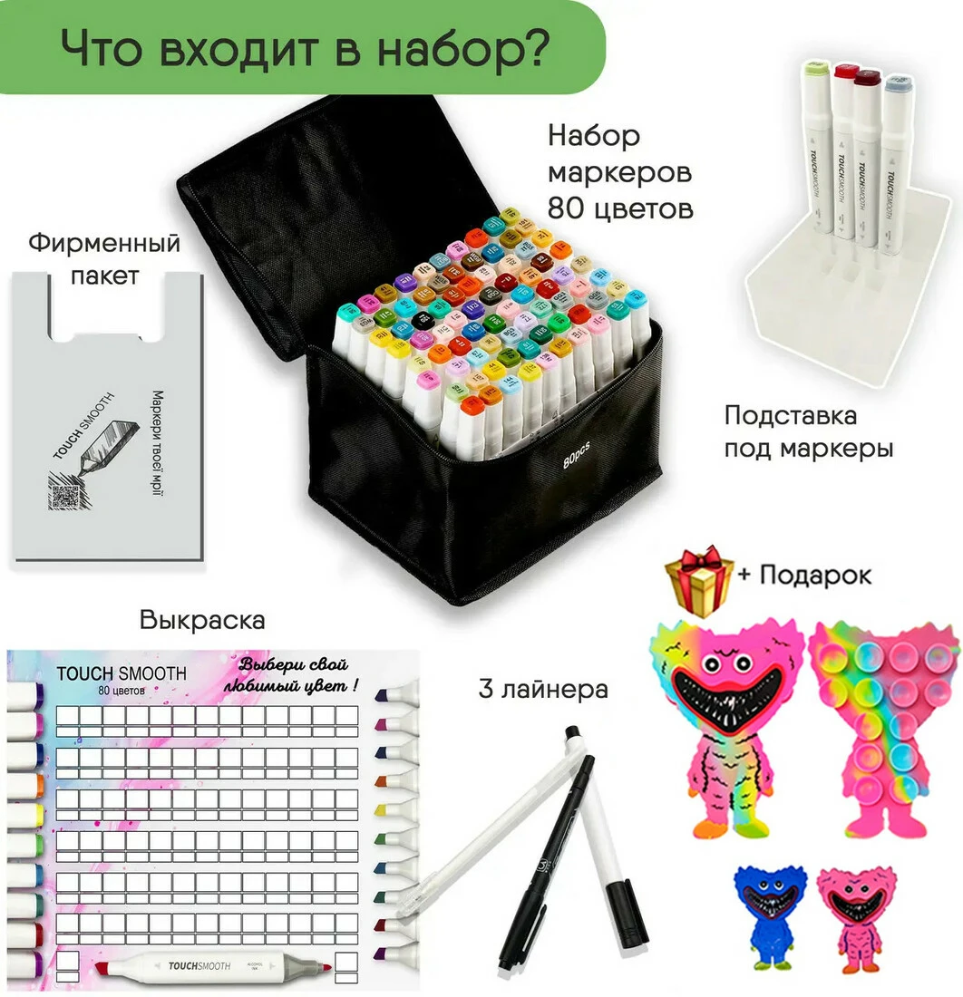 Набір двосторонніх маркерів Touch Smooth для малювання і скетчинга 80 шт + Сквідопоп Хагі Вагі у подарунок