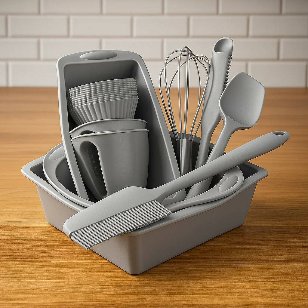 Набір форми силіконові для випічки 22 штук, комплект кухонного приладдя з прихватками, Колір Сірий