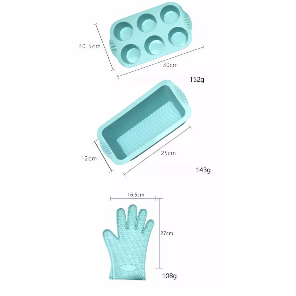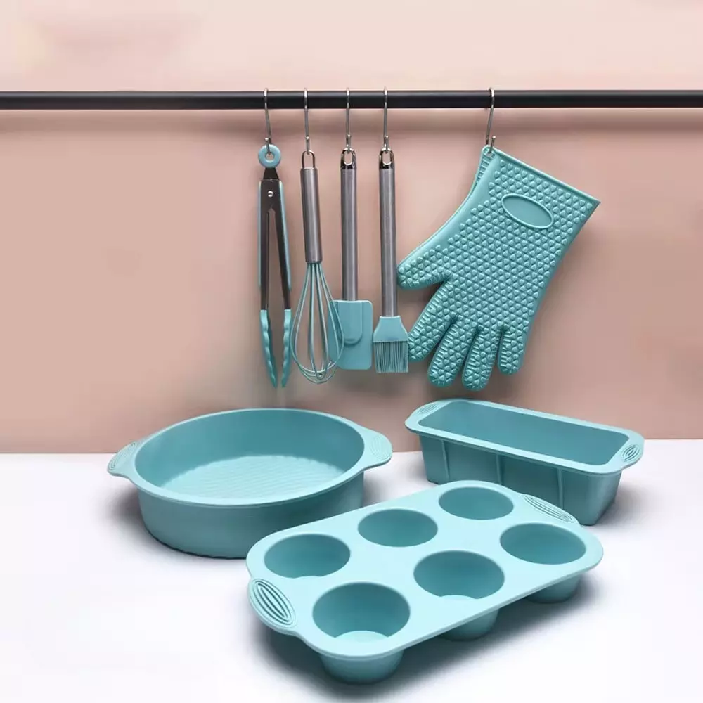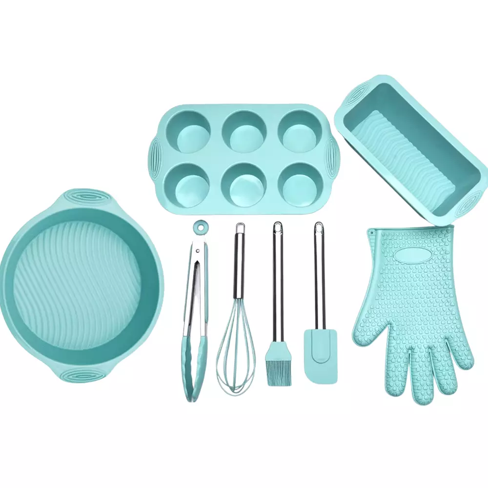 Набір форми силіконові для випічки 8 штук, комплект кухонного приладдя з прихваткою, колір бірюзовий