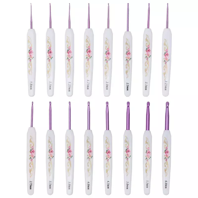 Набір гачків для в'язання в косметичці, 16 штук білих гачків, розмір 1.0/6.0 мм