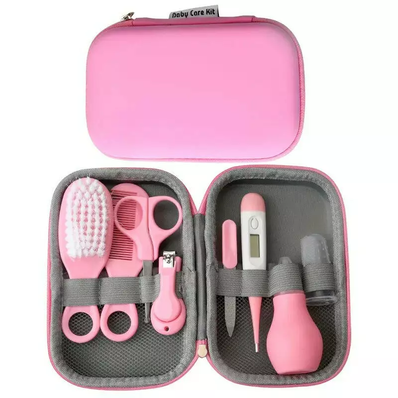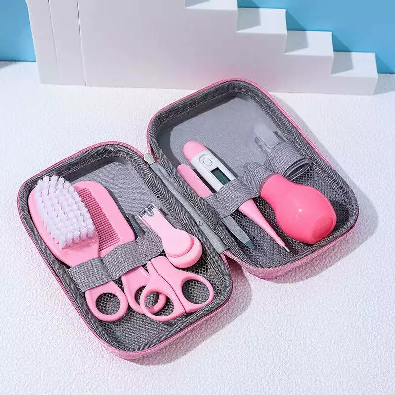 Набір для новонароджених, манікюрний 8 предметів: гребінець, ножиці, кусачки, пилочка, піпетка для дітей, рожевий