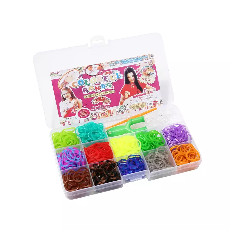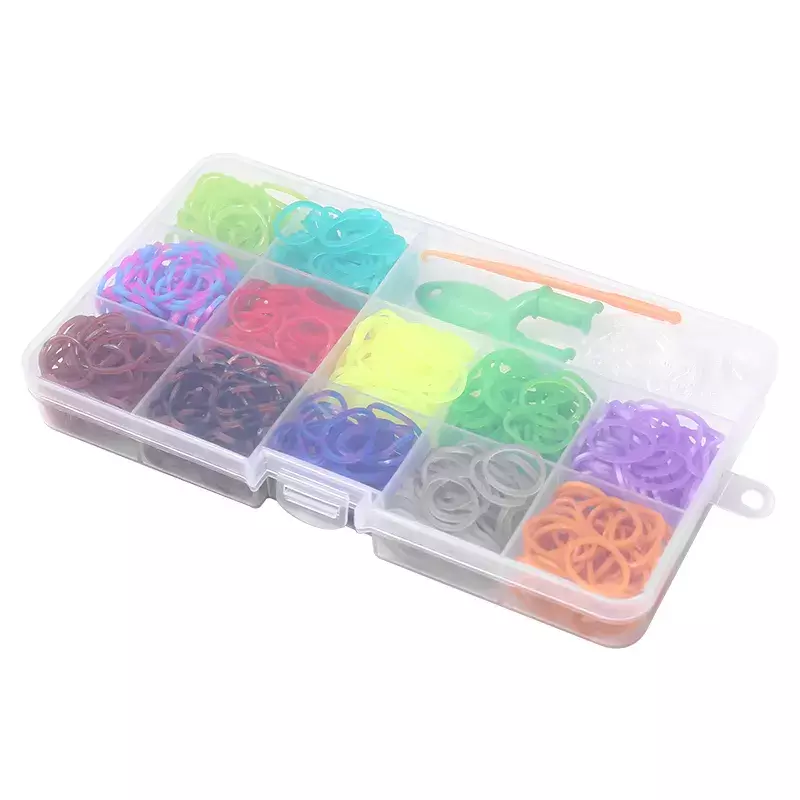 Набір гумок для в'язання яскравих браслетів у пластиковому контейнері, сет №1