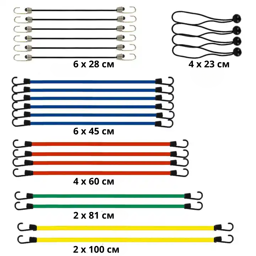 Набір гумових фіксаторів для кріплення багажу і банджині-кулі—
