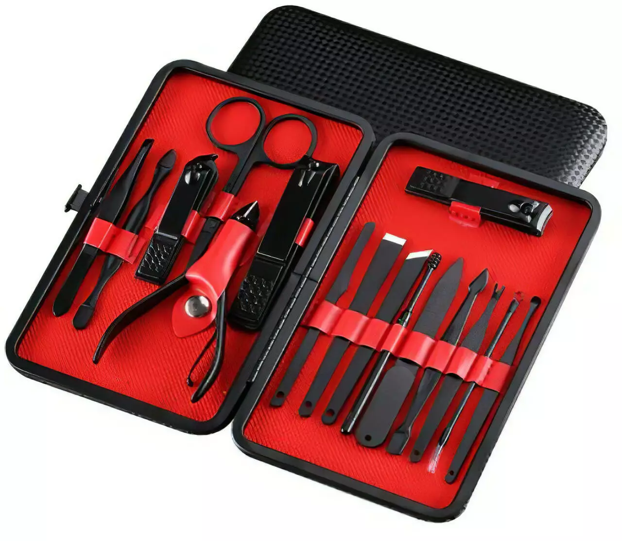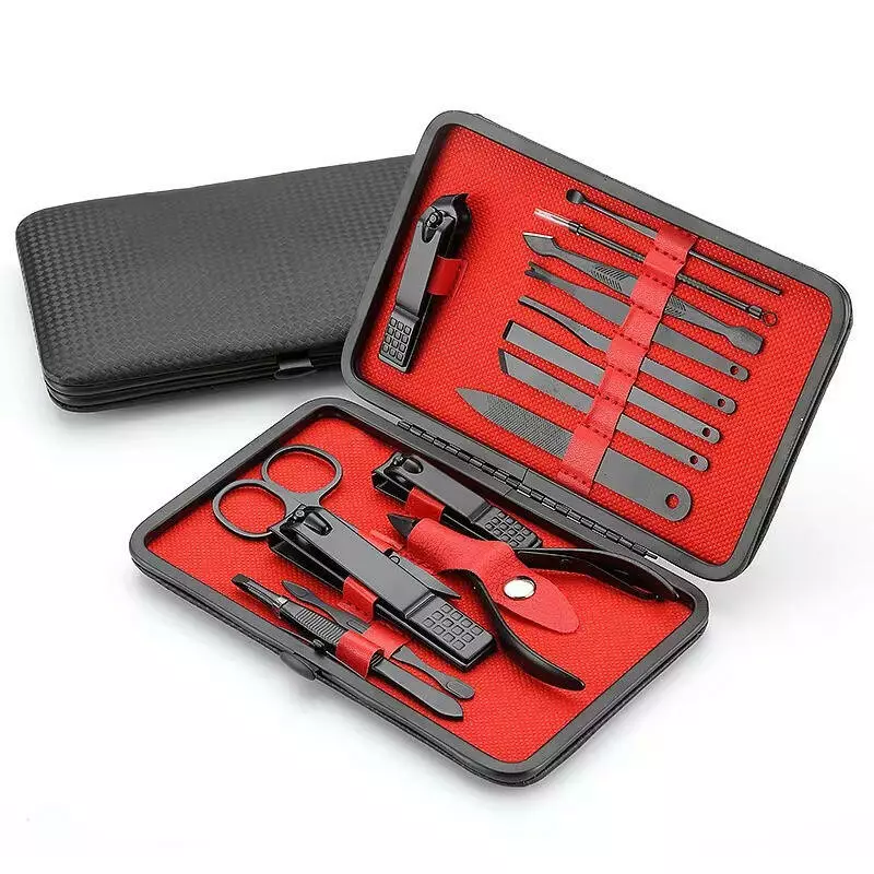 Набір для манікюру і педикюру універсальних інструментів, 16 шт, колір чорний у кейсі пінцет, ножиці, пилочка