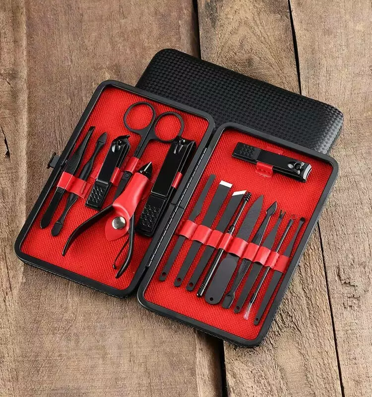 Цей багатофункціональний б'юті-набір ідеально підійде для догляду за нігтями та шкірою рук і ніг як у домашніх умовах, так і в поїздках. У комплекті 16 якісних інструментів, виконаних з нержавіючої сталі, включно з кусачками, пилками, ножицями та лопатками. Всі предмети акуратно упаковані в стильний пластиковий кейс на клямці, який легко поміщається в сумочку.