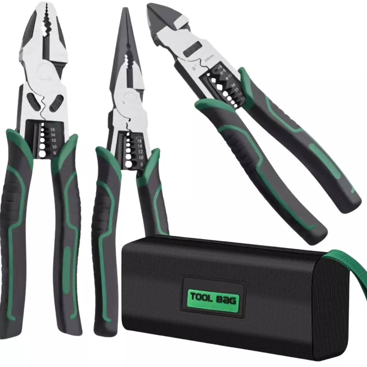 Набір інструментів ручних 3 шт: бокорізи, довгогубці, комбіновані плоскогубці з сумкою з функцією обтиску кабелю