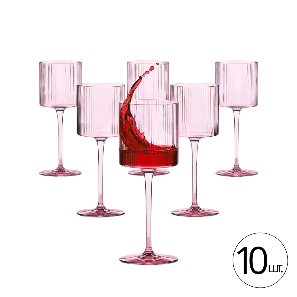 Набір келихів для вина 350 мл, 10 шт, багаторазові, пластикові, міцні для вин і напоїв прозоро-рожеві