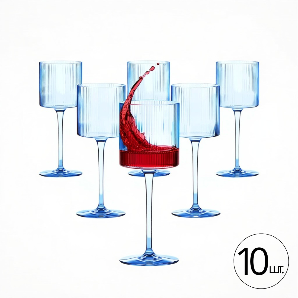 Набір келихів для вина 350 мл, 10 шт, багаторазові, пластикові, міцні для вин і напоїв прозоро-сині