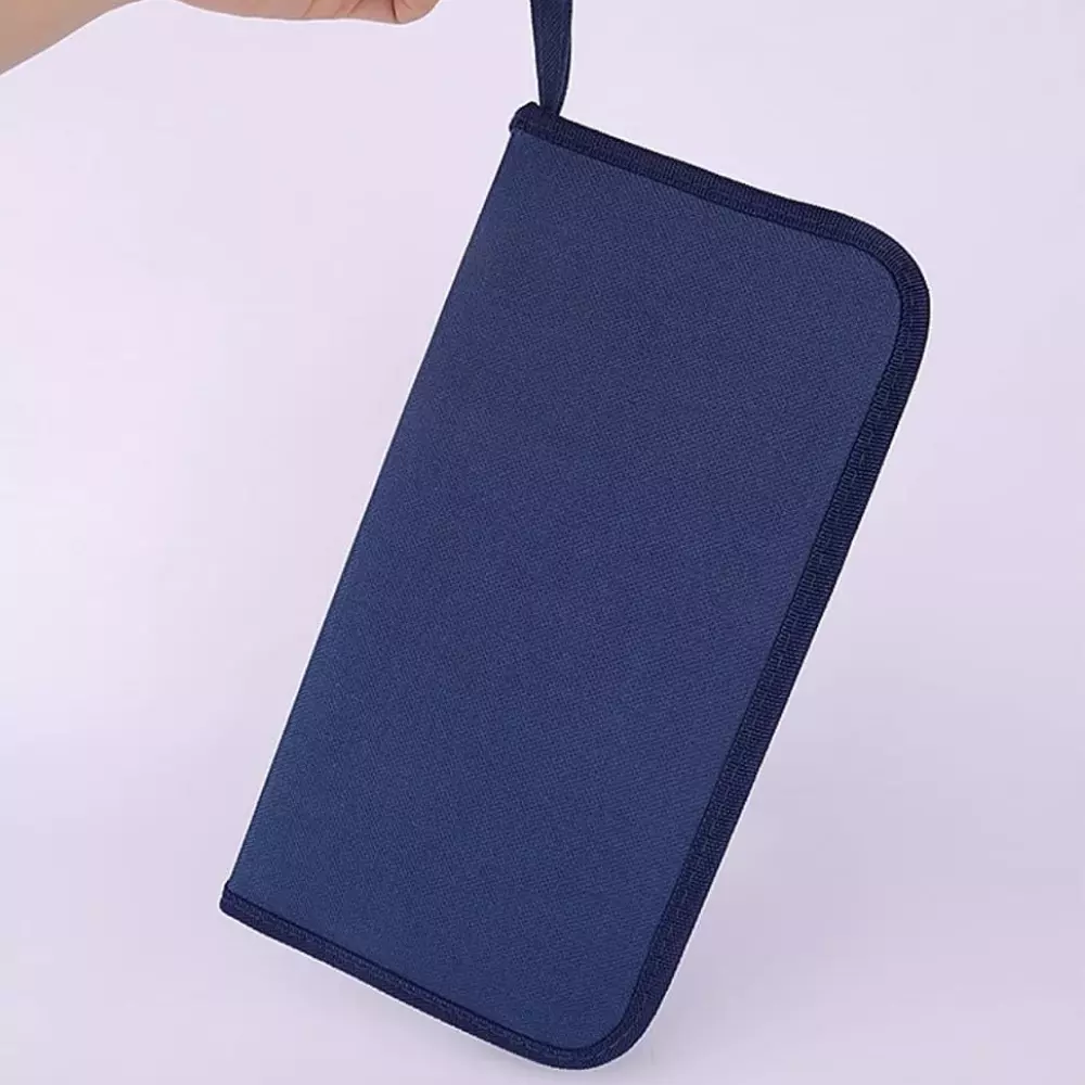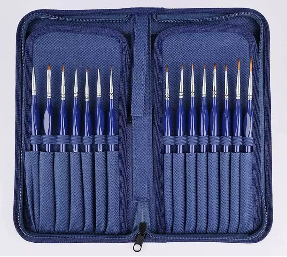 Набір кистей нейлонових в чохлі на блискавці для акварелі, акрилу, гуаші, масла і нейл-арту, 15 шт сині