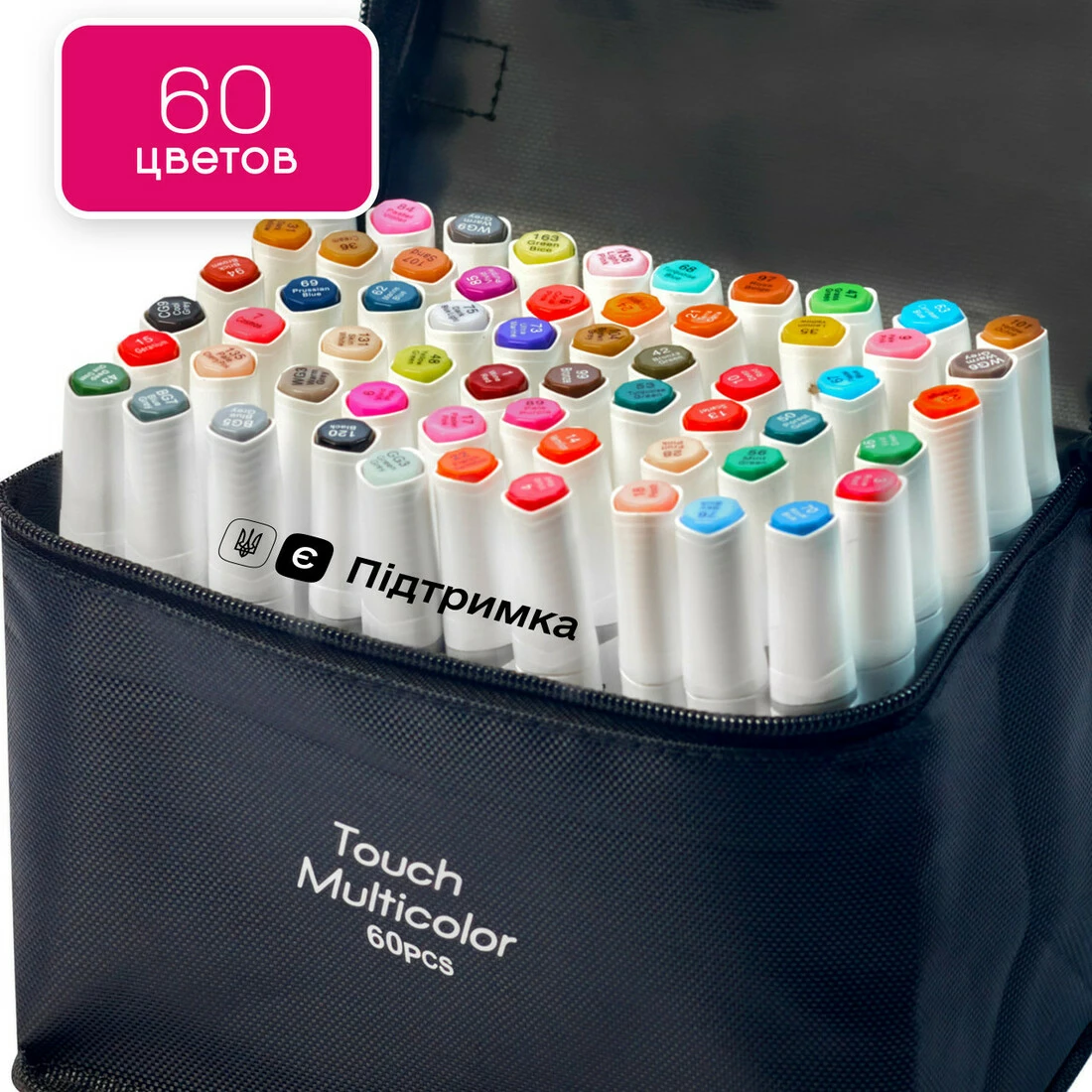У наборі 60 маркерів різних кольорів.