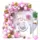 У комплект входять кулі різних розмірів і відтінків: білі, золоті та рожеві, а також прозорі кулі з золотими конфетті, що надає особливого блиску. Набір доповнено різними аксесуарами для зручного кріплення і створення складних композицій. Декоративні метелики допоможуть надати повітряній інсталяції легкості та вишуканості, роблячи оформлення більш виразним.