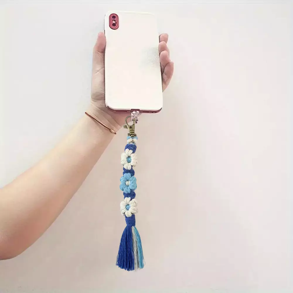 Набір макраме для ручного плетіння і в'язання брелока "Квіти" для ключів і аксесуарів 20х2.2 см, синій