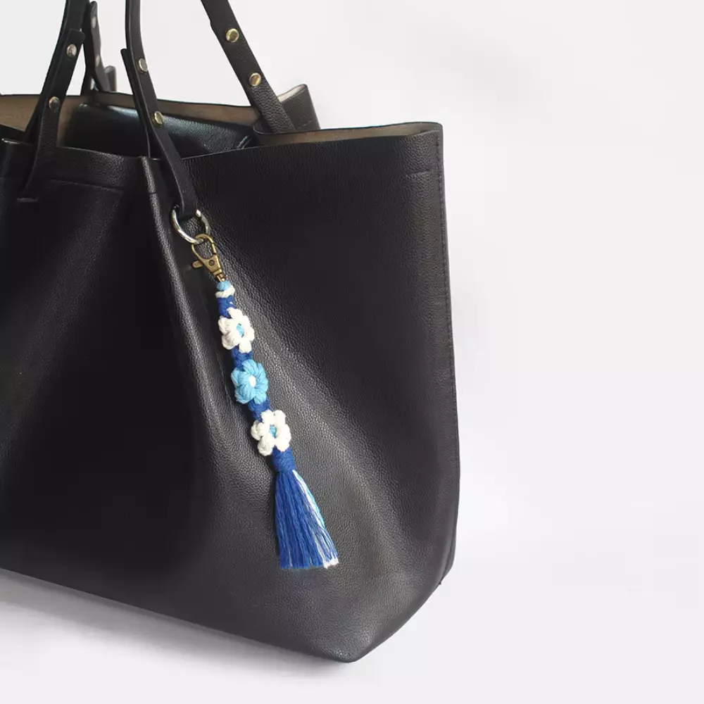 Набір макраме для ручного плетіння і в'язання брелока "Квіти" для ключів і аксесуарів 20х2.2 см, синій