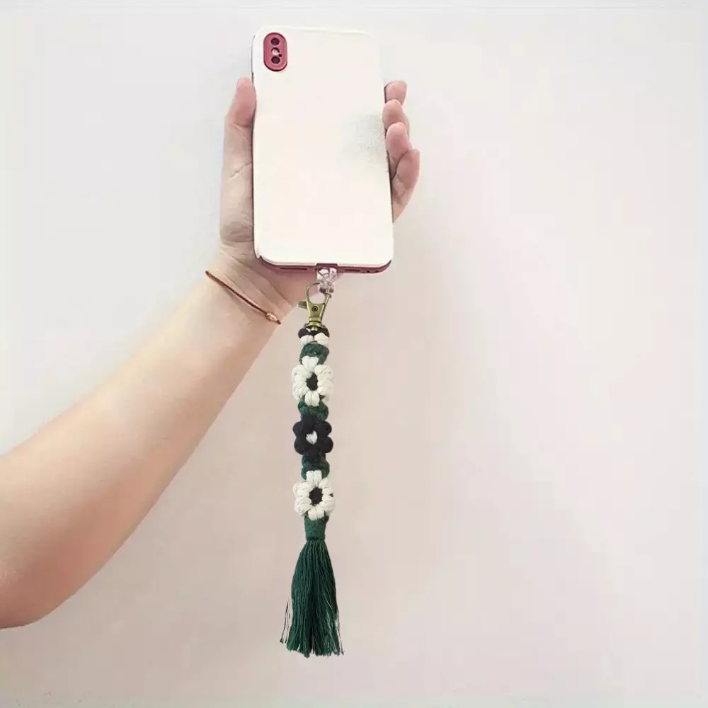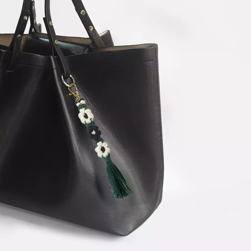 Набір макраме для ручного плетіння і в'язання брелока "Квіти" для ключів і аксесуарів 20х2.2 см, темно-зелений