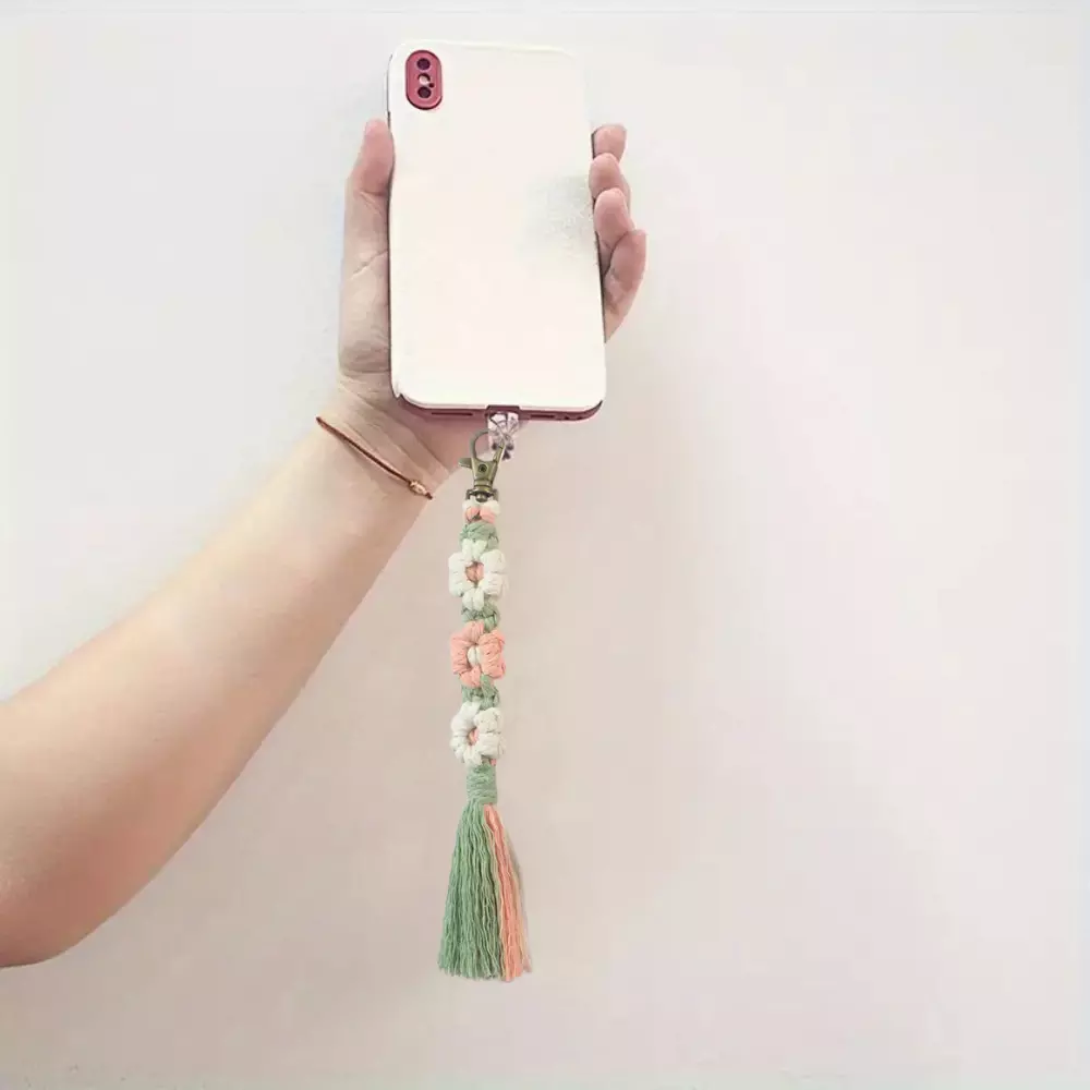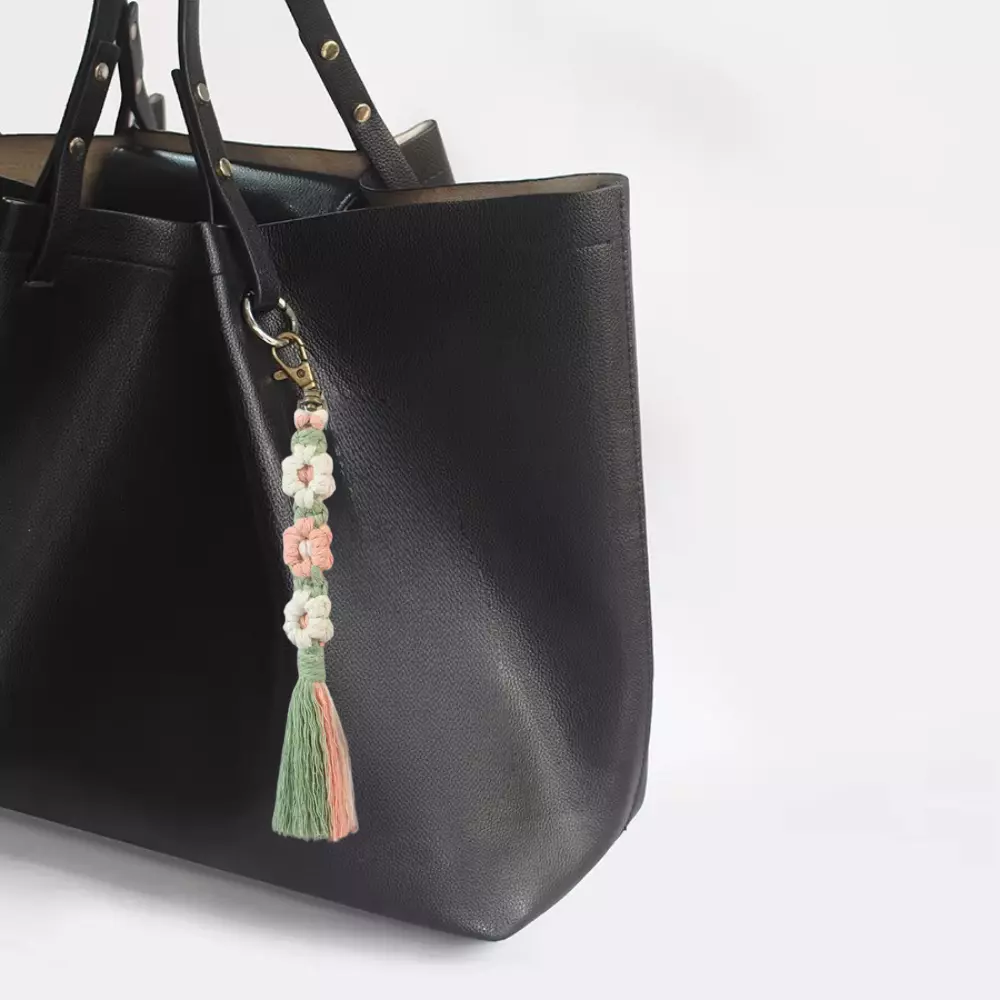 Набір макраме для ручного плетіння і в'язання брелока "Квіти" для ключів і аксесуарів20х2. 2 см, зелений