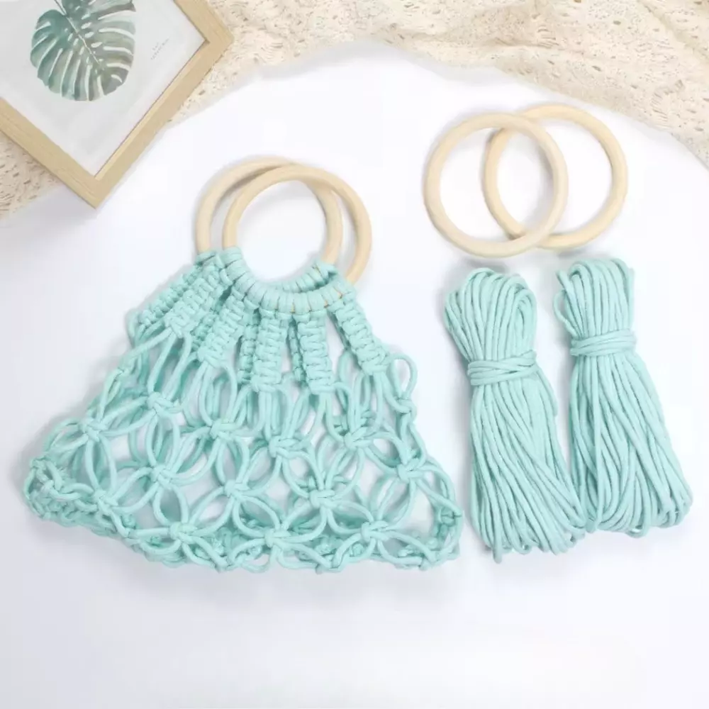 Набір макраме для ручного в'язання ажурної плетеної сумки 29х26 см для рукоділля та творчості колір м'ятний