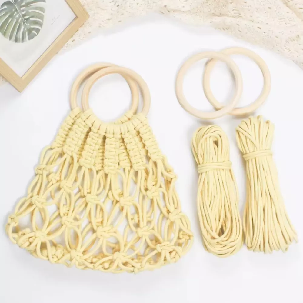 Набір макраме для ручного в'язання ажурної плетеної сумки 29х26 см для рукоділля та творчості колір жовтий