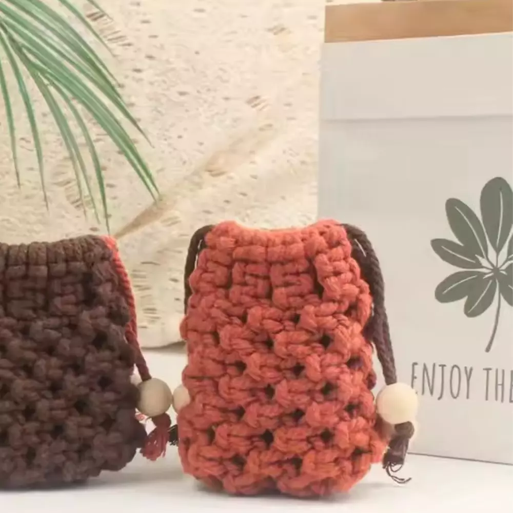 Набір макраме для ручного в'язання чохла для навушників і аксесуарів 8х7см помаранчевий для рукоділля та творчості