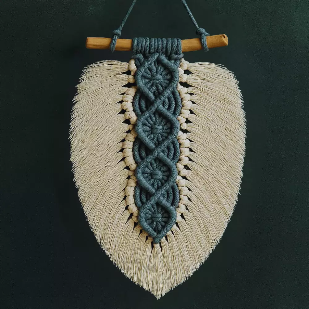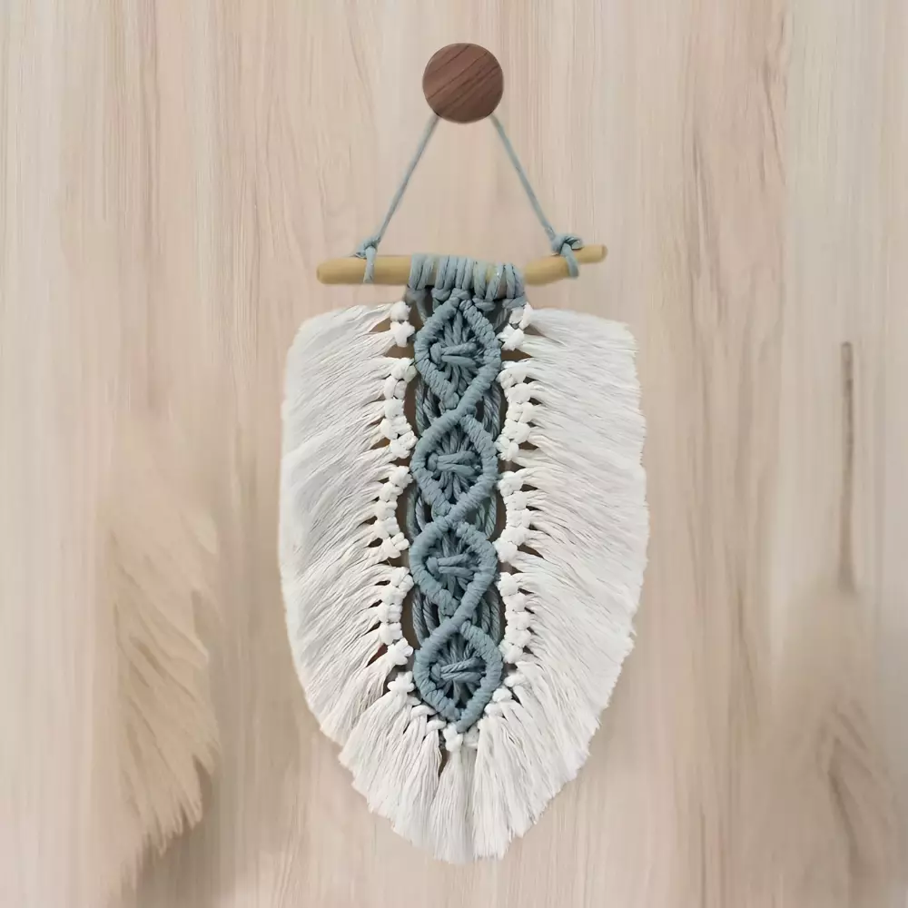 Набір макраме для ручного в'язання гобелена настінного декору «Лист» 26х15см для рукоділля і творчості блакитний