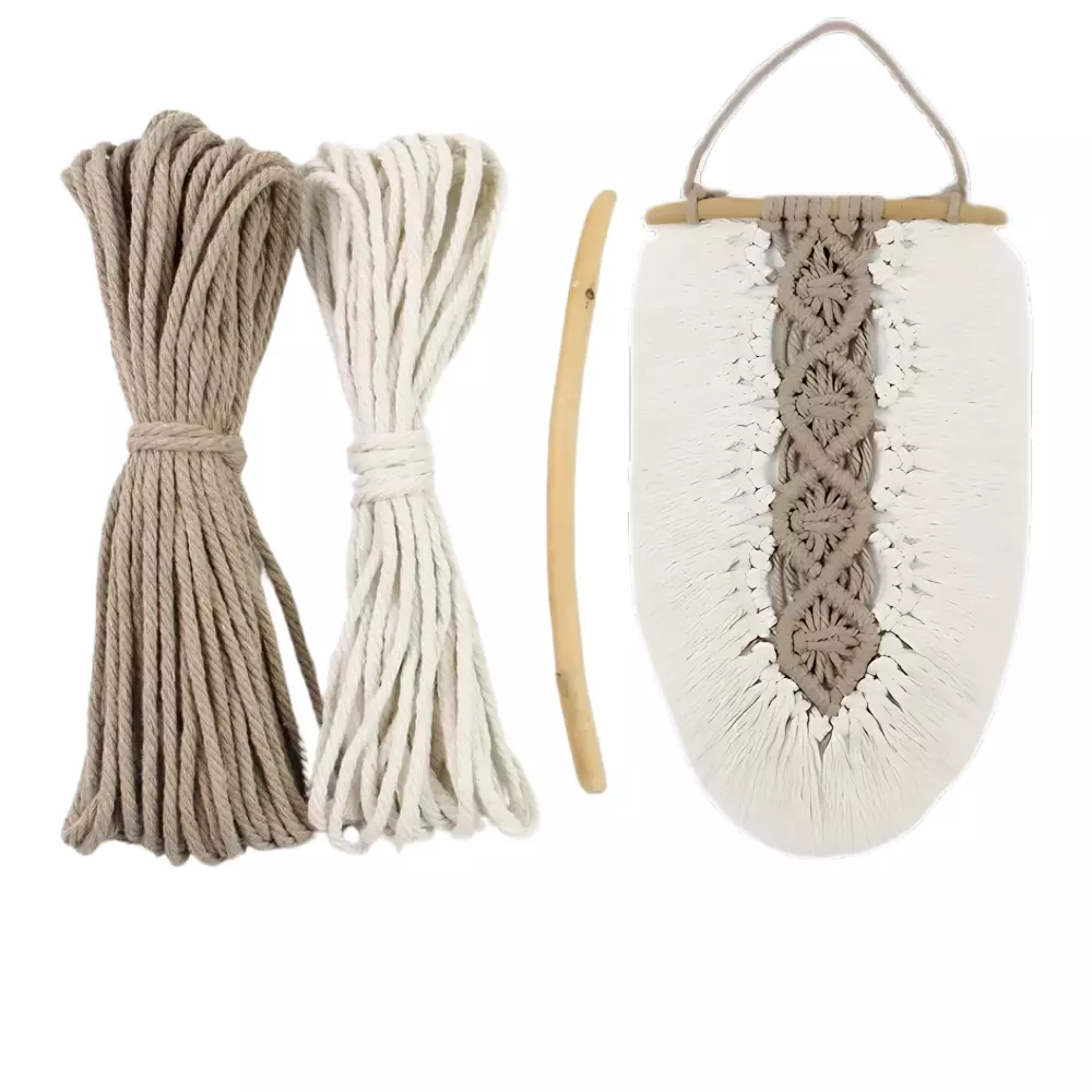наборі є все необхідне для плетіння: поліестерові шнури бежевого та