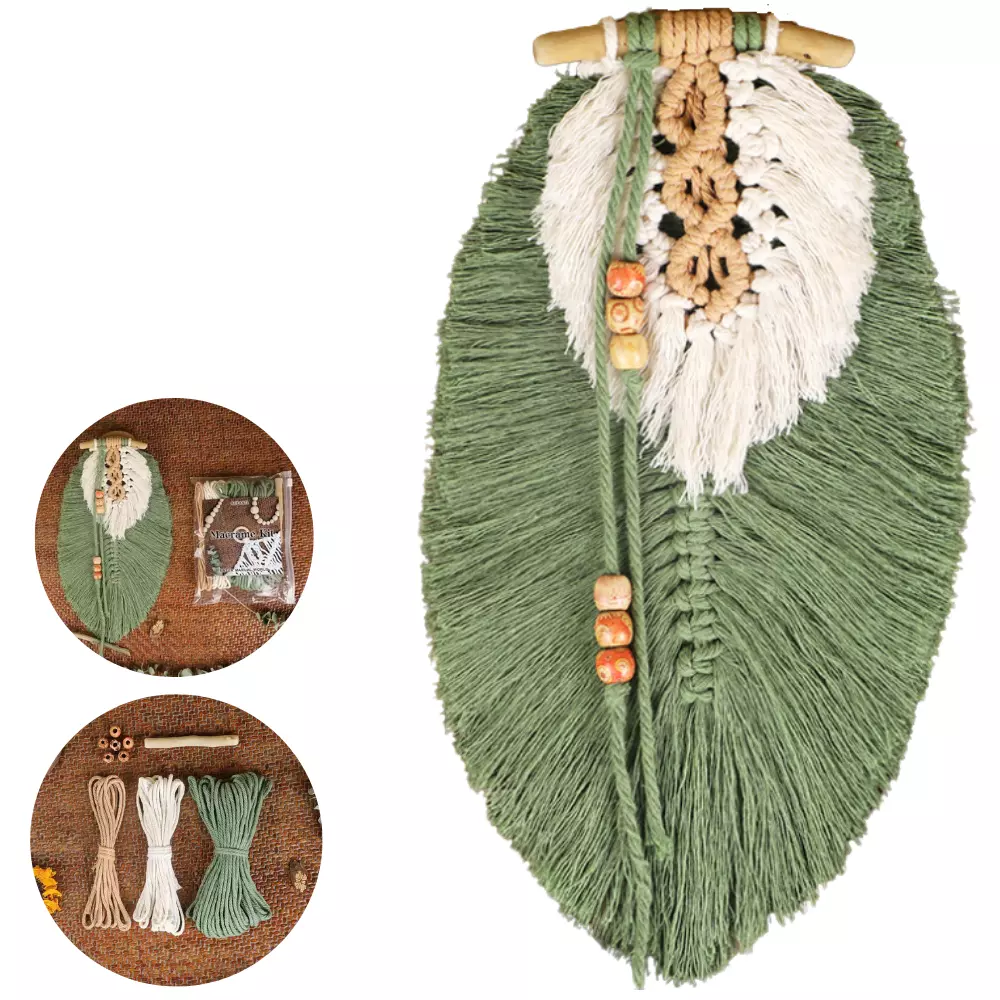 Набір макраме для ручного в'язання настінної прикраси для дому «Листок» для рукоділля та творчості