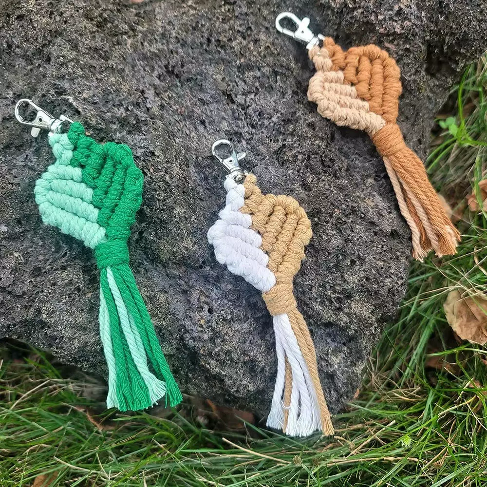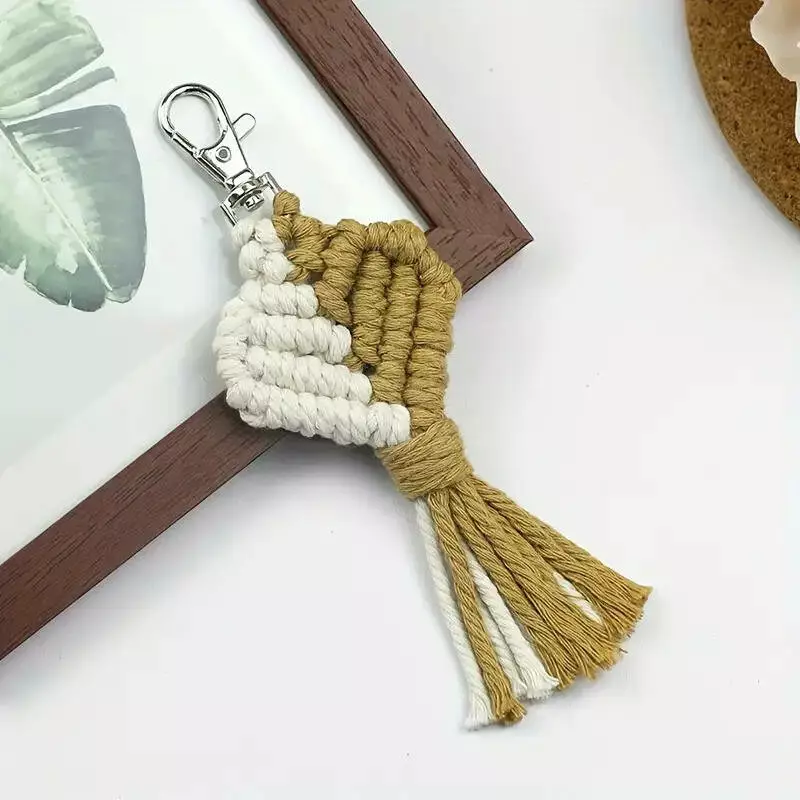Набір макраме для рукоділля для ручної пряжі брелока для ключів або аксесуарів 15х5см, коричневий з білим
