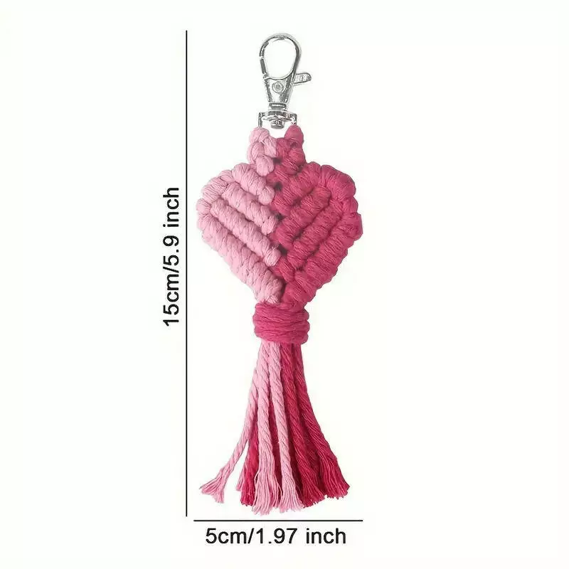 Набір макраме для рукоділля для ручної пряжі брелока для ключів або аксесуарів 15х5см, рожевий