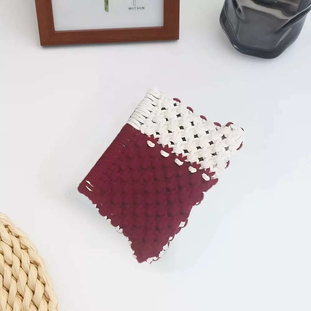 Набір макраме для рукоділля, для творчості та в'язання своїми руками гаманця 15.7х10см колір червоний з білим